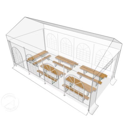 Voor partytenten gelden afwijkende lever- en ophaalmomenten in verband met op- en afbouw.